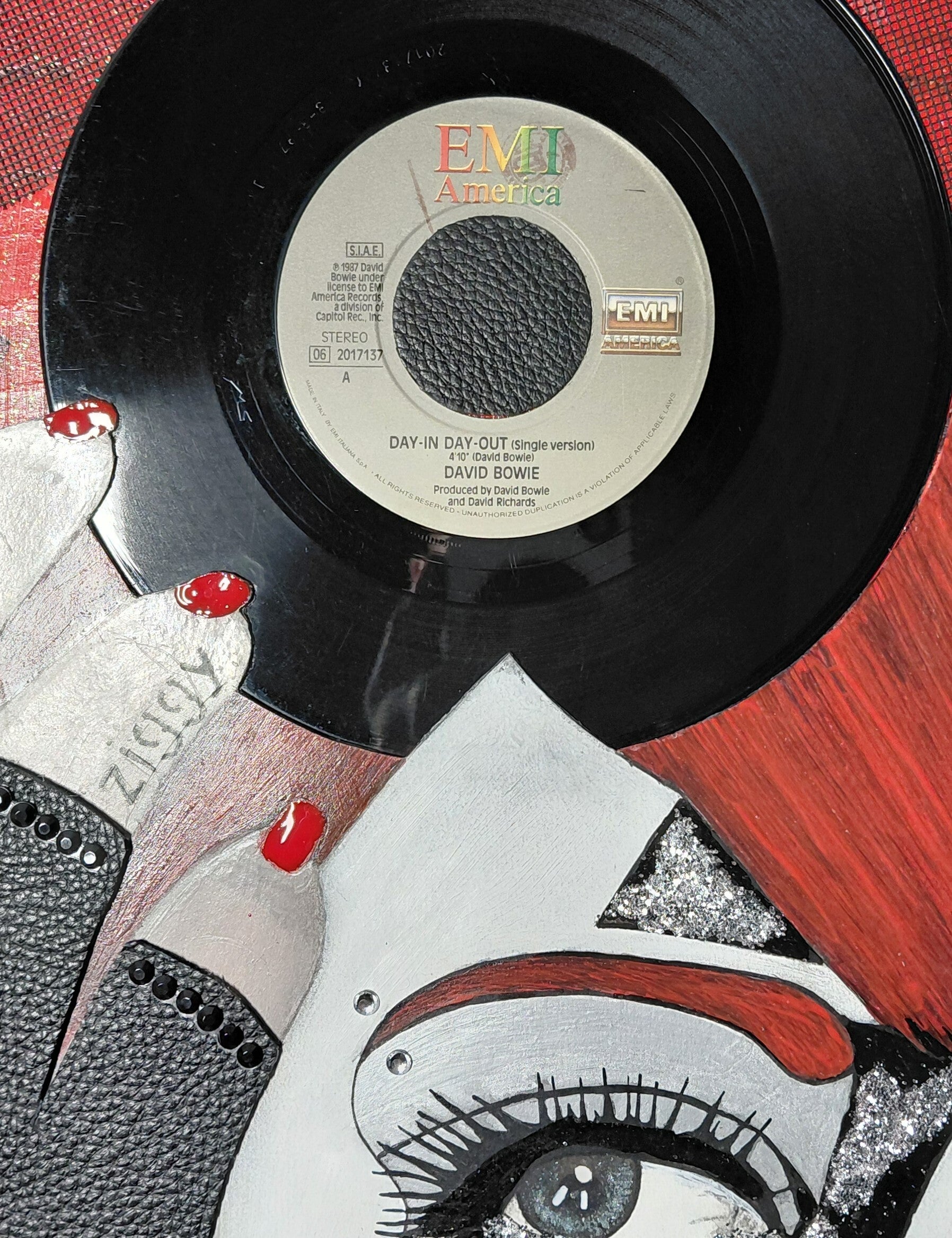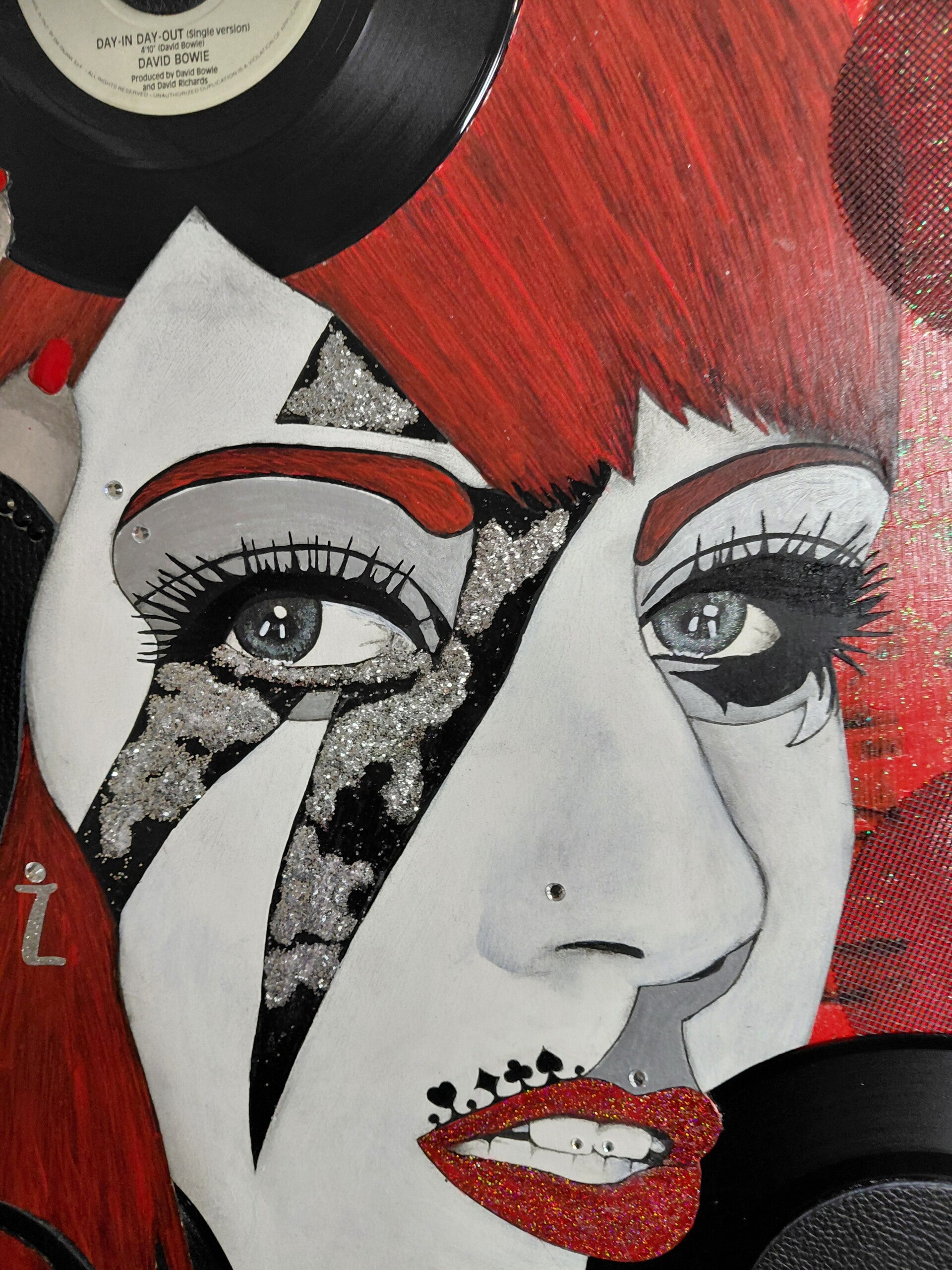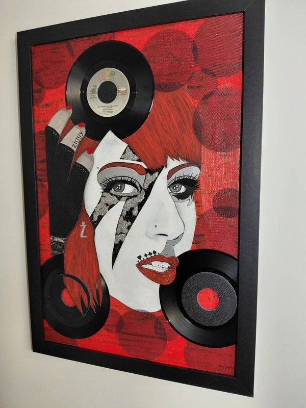 L'opera è un labirinto di dettagli preziosi, richiami visivi alle ere di Aladdin Sane si intrecciano con la teatralità di Artpop, creando un linguaggio universale che parla di libertà, metamorfosi e genio. L'artista emergente, la cui firma incide una traiettoria di valore in costante ascesa, ha catturato l’anima di due epoche, fondendole in un unico, irripetibile istante di bellezza contemporanea.