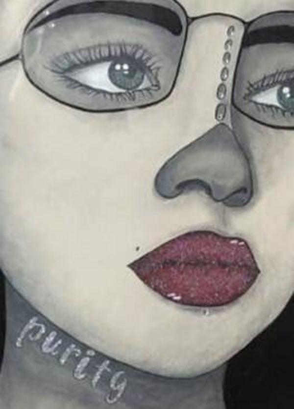 Questo quadro è un grido silenzioso, un’opera enigmatica che mette a nudo la collisione tra la dogmatica millenaria e la sofferenza contemporanea. Al centro, il volto di una giovane ragazza diventa il campo di battaglia dove si scontrano il peso della tradizione religiosa e il bisogno viscerale di un'altra identità. È un ritratto della tristezza che si fa icona, una pietà moderna vestita di inchiostro e vinile.